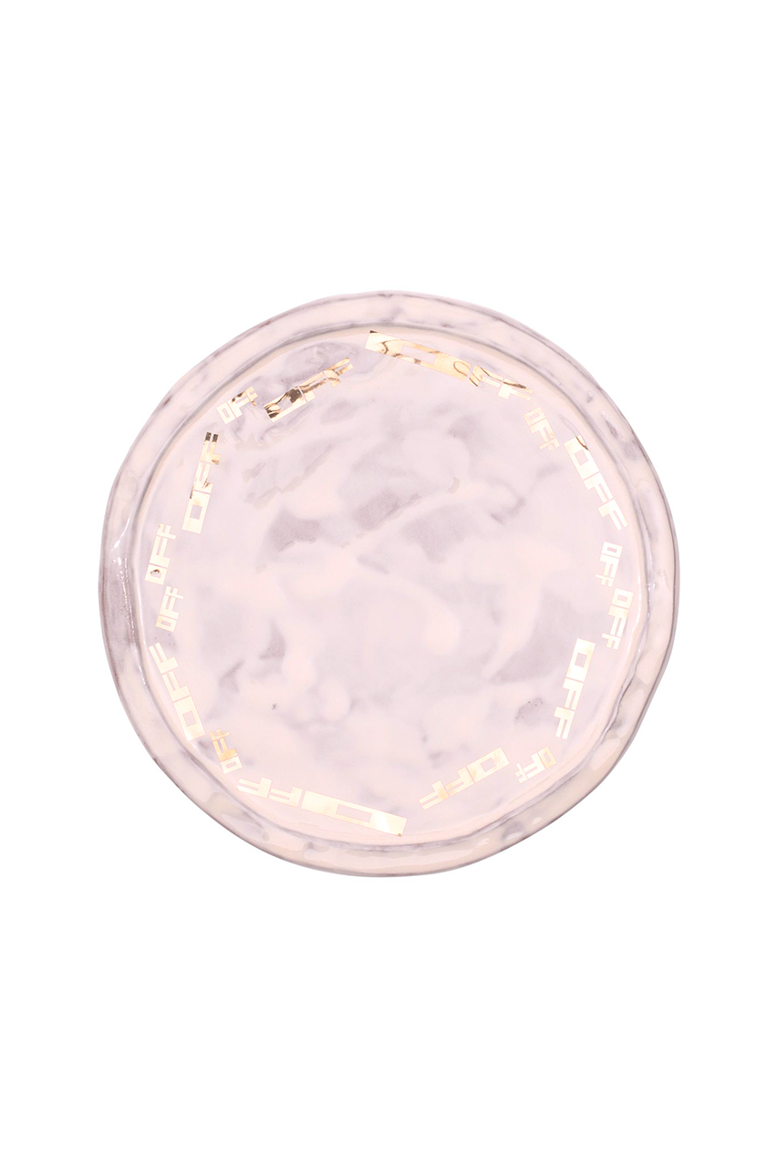 Ikon lambang Off-White ™ sering muncul di seluruh koleksi dalam bentuk tanda panah silang disulam ke bagian vamp pada sandal, atau merek “OFF” berulang yang dicap di sekeliling perangkat teh, nampan, dan perabotan lembut. Pada koleksi Off-White ™ HOME kali ini memang berbeda dengan karakter biasanya yang bergaya street dan frontal karena tampilannya begitu elegan dan penuh nuansa kelembutan.