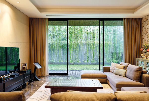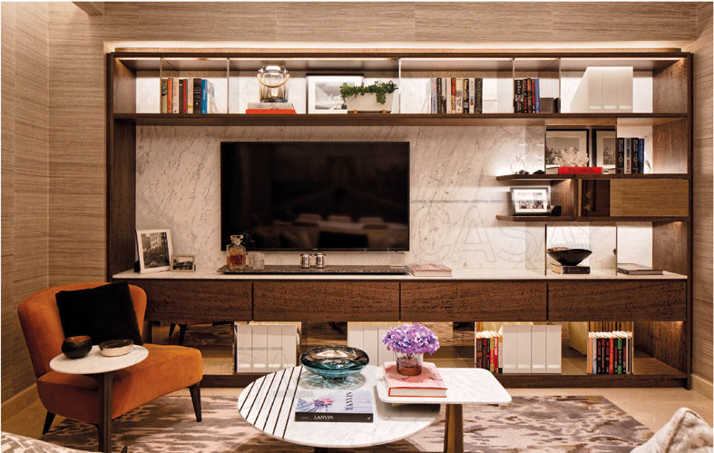 Jarak antara TV dan sofa itu penting untuk diperhatikan. Ukuran TV harus berbanding lurus dengan luasan ruang keluarga yang Anda miliki.