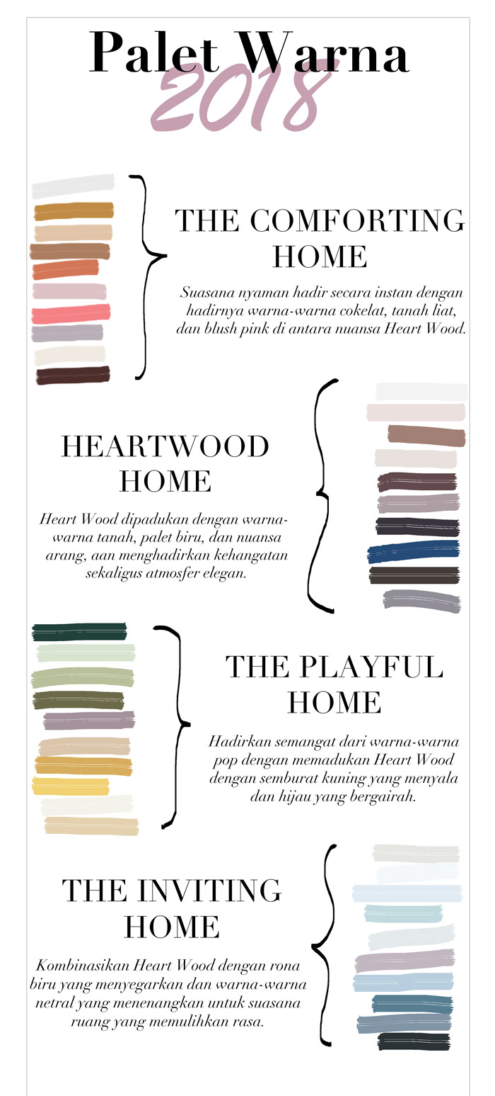 Beberapa waktu lalu, Dulux meluncurkan tren warna 2018. Heart Wood menjadi tema warna untuk desain interior di tahun ini. Kehangatan suasana yang dihadirkan Heart Wood ternyata dapat dikembangkan menjadi empat karakter berbeda.