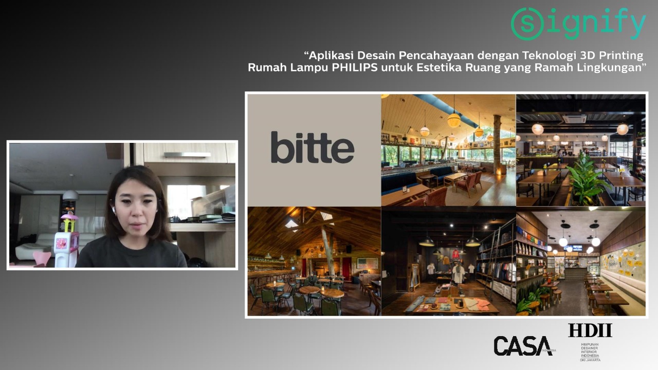 Beberapa waktu silam, MRA Media bekerjasama dengan Signify dalam mengadakan webinar yang membahas peran desain, terutama desain pencahayaan, pada ruang publik seperti hotel, kantor, retail, hingga restoran. Bertajuk Aplikasi Desain Pencahayaan dengan Teknologi 3D Printing Rumah Lampu untuk Estetika Ruang yang Ramah Lingkungan, perbincangan ini turut didukung oleh Himpunan Desain Interior Indonesia (HDII) DKI Jakarta yang diwakili oleh desainer Rina Renville selaku moderator. Begitu pula dengan narasumber Agatha Carolina (Principal Architect Bitte Design Studio) dan Putri Dwiminarni selaku Lighting Specialist dari Signify.