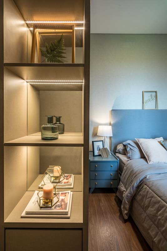 Threvi juga sengaja memilih furnitur built-in untuk interior hunian. Sebagai instrumen investasi, furnitur built-in dapat meminimalkan adanya loose items atau barang-barang yang mudah dipindahkan, penghuni selanjutnya pun dapat memasukkan barang-barang mereka relatif lebih mudah.