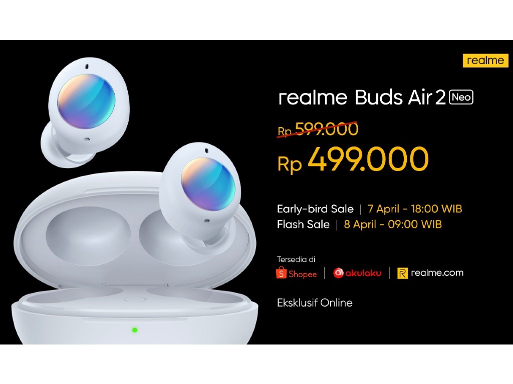 Kemudian ada juga realme Buds Air 2 Neo sebagai TWS dengan Active Noise Cancellation yang terjangkau untuk semua kalangan dengan masa pakai baterai hingga 28 jam, 10mm Driver Dynamic Bass Boost, dan 88ms latency mode, menjadikannya TWS dengan ANC untuk semua orang.