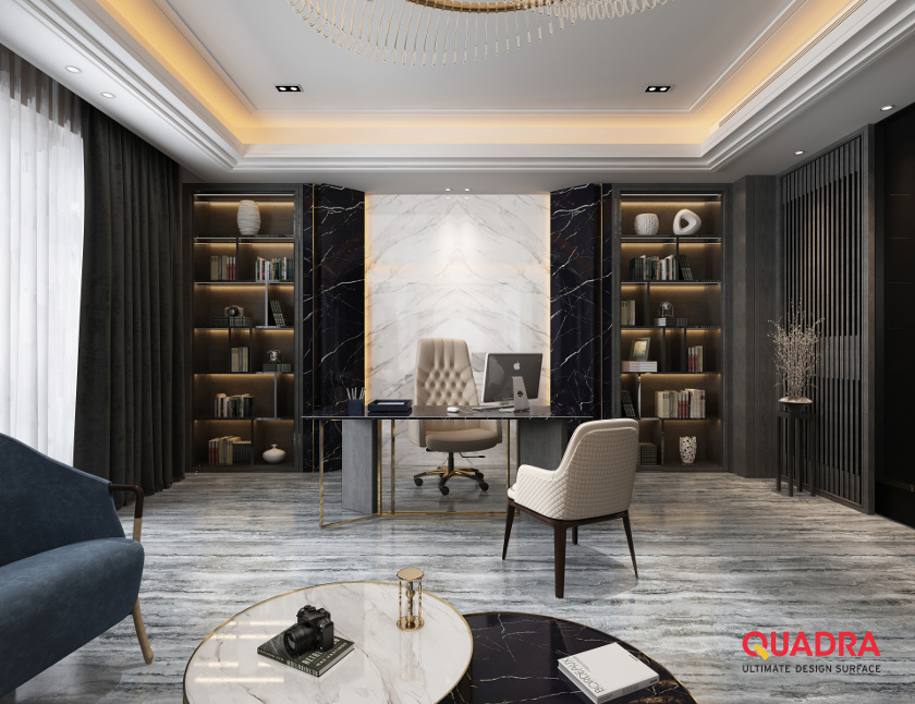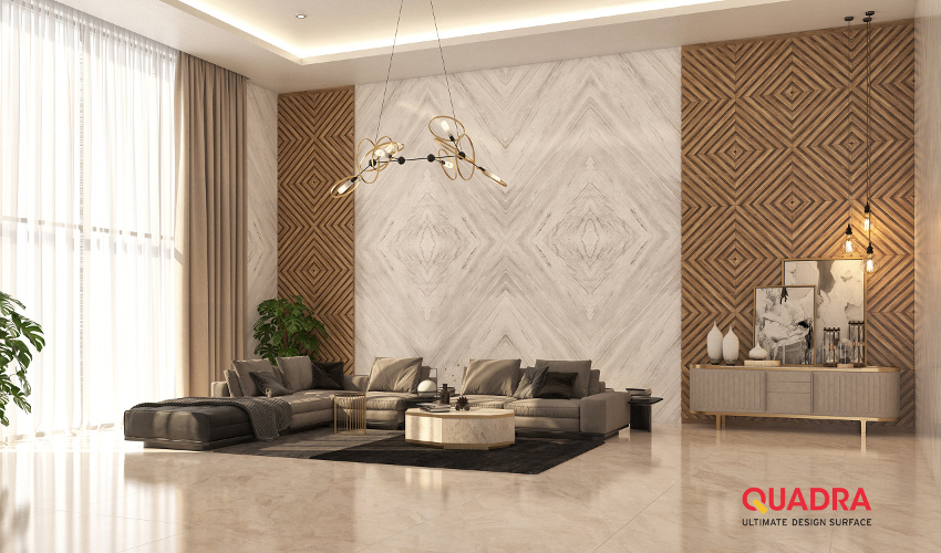 Saat membahas tentang pelapis lantai dan dinding, pilihan material sepertinya begitu banyak, mulai dari jenis, ukuran, dan tingkat ketahanan. Namun bagi yang menginginkan material dalam ukuran besar sebagai centerpiece atau vocal point dalam interior, sintered stone slab dari Quadra bisa menjadi pilihan yang tepat dan menarik. Sintered Stone Slab adalah material yang terbuat dari campuran bahan bebatuan berkualitas yang dipadatkan dengan tekanan tinggi, lalu dibakar dengan suhu sangat tinggi yaitu 1250°.Â