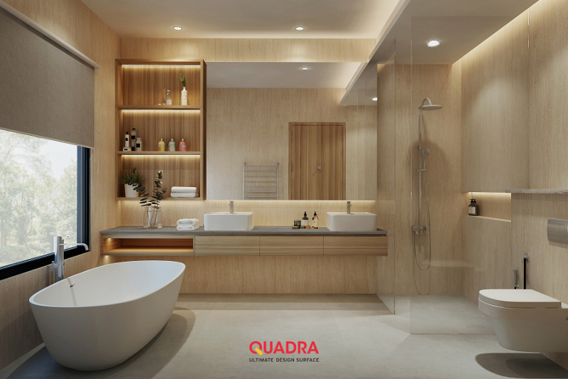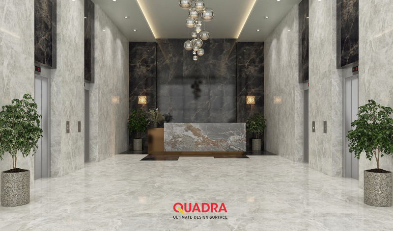 The All New Collections 2021 ini menghadirkan pilihan permukaan (surface) yaitu Shiny Polished, Luxurious Matte, Original Matte dan Lite Matte. Jadi sesuaikan dengan lokasi pemakaian produk Quadra ini, apakah untuk top table, backdrop, atau lantai. Semua produk Quadra diciptakan dengan filosofi green concept dimana kelestarian lingkungan mendapat perhatian termasuk ketika proses produksinya (meminimalkan polusi, water recycling, penggunaan gas sebagai bahan bakar, dsb).