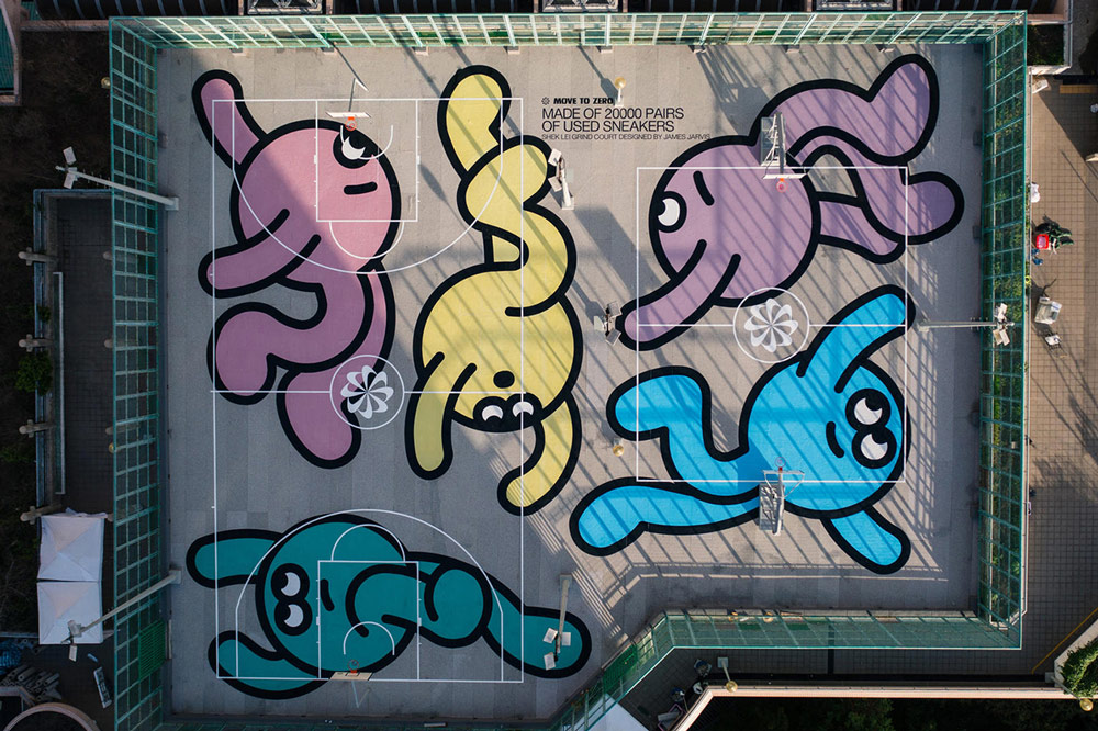 Nike sebagai salah satu pelopor merek dagang olahraga seperti tidak henti dalam membuat terobosan. Pada bulan Juni ini, Nike kembali mencetak debut dengan menggagas renovasi lapangan Shek Lei yang ada di Hong Kong. Lapangan yang terletak di kawasan Kwai Chung ini memiliki keunikan tersendiri karena dibuat dari 20.000 pasang sepatu sneakers bekas yang digiling halus menjadi material lantai lapangan. Gagasan ini selaras dengan spirit Nike Move to Zero sebagai bagian dari tanggung jawab lingkungan oleh Nike. Area Kwai Chung dipilih karena berdekatan dengan 14 sekolah dasar dan menengah. Di seluruh lapangan dilukis oleh karakter animasi lucu yang dirancang oleh seniman Inggris James Jarvis bersama dengan logo pinwheel retro Nike yang ditempatkan di tengah lapangan.
