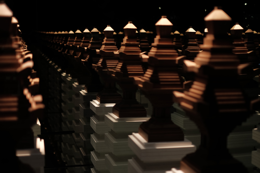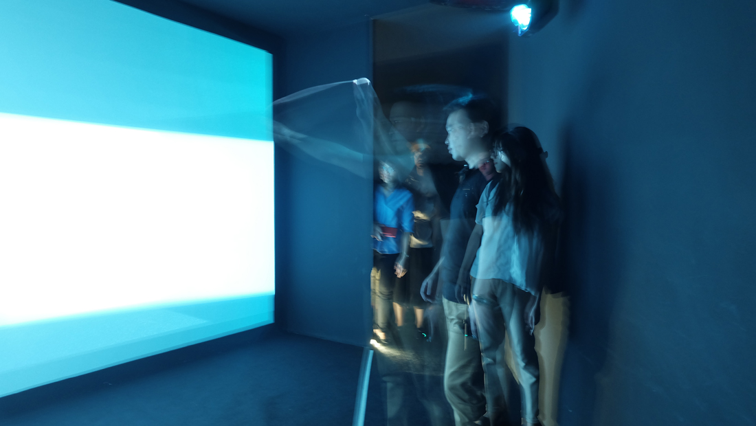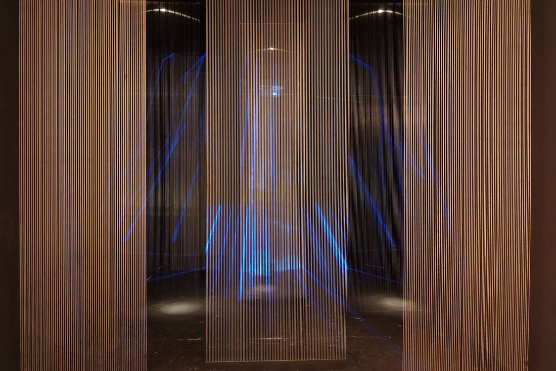 Komposisi Garis Seri 2, karya arsitek Rubi Roesli yang menampilkan ilusi optik dari pancaran proyektor di antara susunan garis.