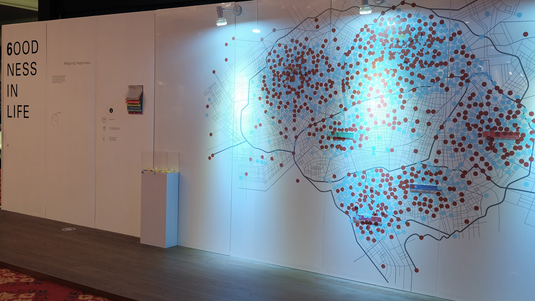 6oodness in Life, instalasi atraktif karya Nusae yang mengembangkan pemetaan kebahagiaan melalui tempelan stiker oleh para pengunjung CASA Indonesia 2017