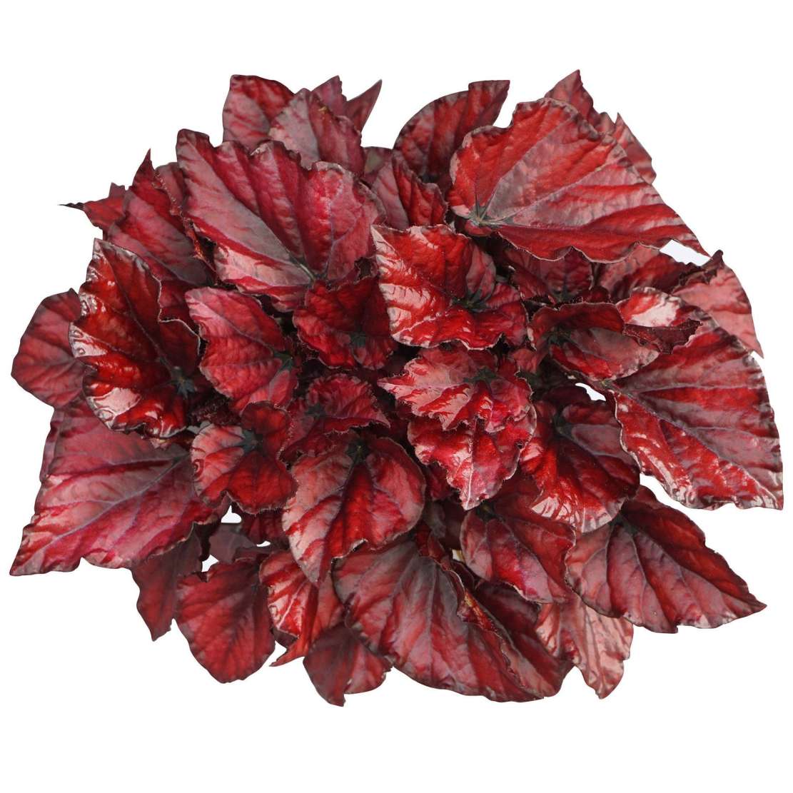 - Begonia rex Red Bull — Begonia rex Red Bull memiliki daun berukuran kecil dan runcing, serta berwarna merah metalik cerah dan mengkilap dengan tepi daun bergelombang.