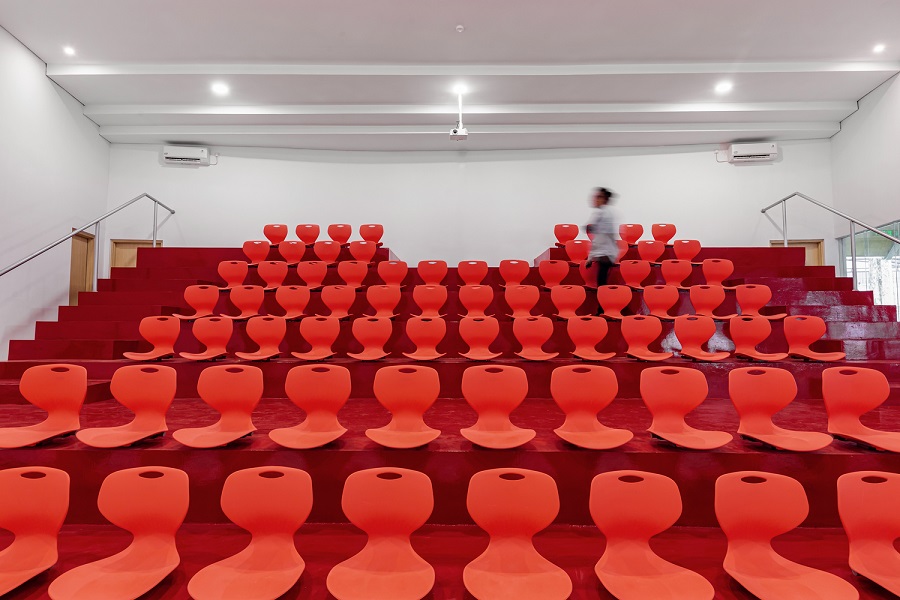 Terbagi atas 3 program ruang, yaitu auditorium, kelas, dan galeri, bangunan berbentuk huruf C ini dirancang untuk membuat tiap ruang memiliki akses ke area teras. Sehingga kegiatan di dalam ruang bisa terekstensi hingga ke ruang luar, tanpa perlu membatasi pergerakan atau aktivitas di pusat kreatif ini.