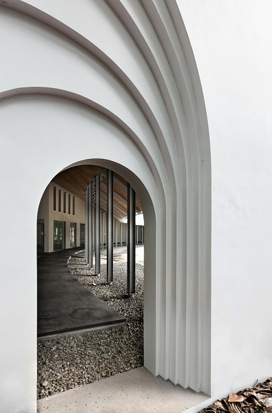 Dengan atap melengkung serta bangunan yang dominan berwarna putih, bangunan dianggap seperti kanvas kosong yang nantinya dapat diisi dengan jiwa serta semangat kreativitas yang penuh warna.