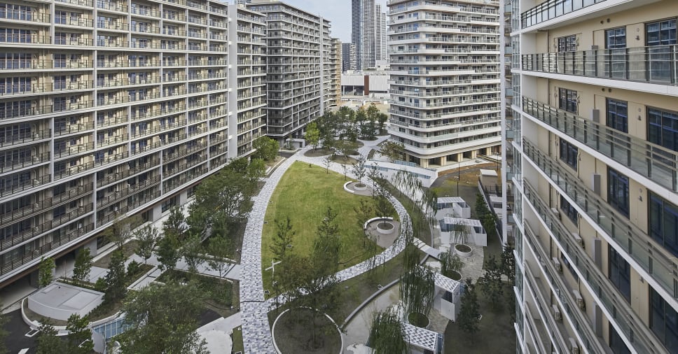 Berlokasi di kawasan waterfront Harumi, Tokyo, Olympic Village dikelilingi dengan pemandangan laut dari tiga sisi, termasuk pemandangan indah Teluk Tokyo serta Rainbow Bridge yang ikonis. Telah dibuka sejak awal bulan Juli 2021 bagi atlet, area residensial ini direncanakan menjadi kawasan pertama di Jepang yang di dukung oleh tenaga hidrogen setelah ajang olahraga usai. Sejumlah 24 gedung di dalamnya akan digunakan sebagai rumah bagi lansia maupun keluarga muda. Desain yang ramah lingkungan serta dilengkapi teknologi terkini merupakan hal utama dalam perancangan Olympic Village. Inilah yang menghantarkan kehadiran ruang hijau, tempat tinggal, ruang edukasi lintas generasi, serta mendukung kegiatan budaya dan olahraga.