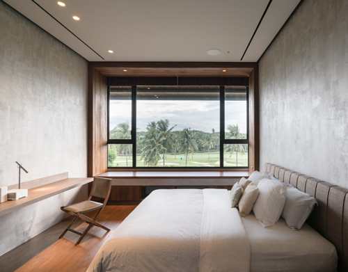 Rumah bertingkat dua ini berfitur empat kamar tidur dengan kamar mandi pribadi di dalamnya. Setiap ruangan mendapatkan panorama kolam renang dan lapangan golf yang hijau. Selain desain yang terintegrasi, rumah ini dilengkapi dengan sound system yang bisa memainkan lagu yang sama di setiap ruangan hingga area outdoor.