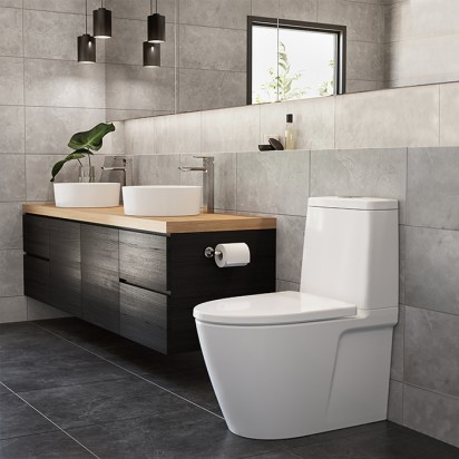 Fitur utamanya adalah sistem double vortex pada toilet yang dapat memaksimalkan proses pembilasan dan mengurangi penggunaan air secara bersamaan. Desain tanpa pinggiran membuat klosetnya nyaman digunakan, lebih mudah dibersihkan, dan terlihat dinamis.