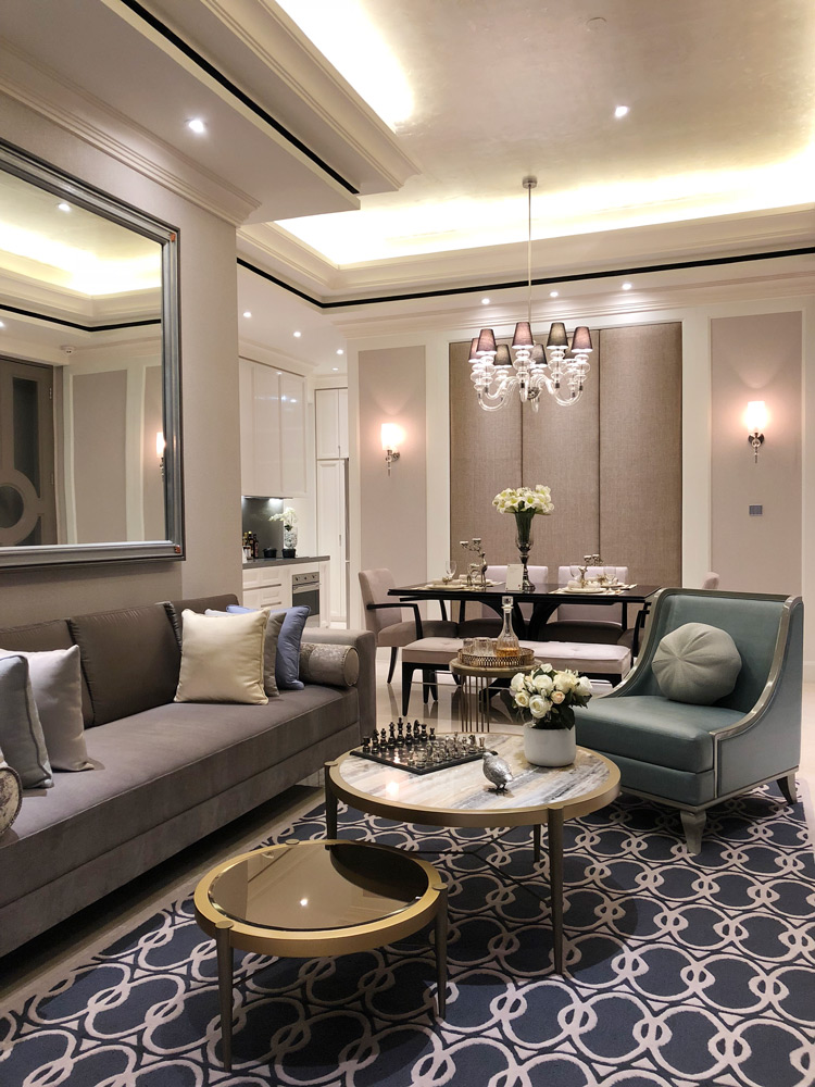 Desain area living room pada apartemen The Stature