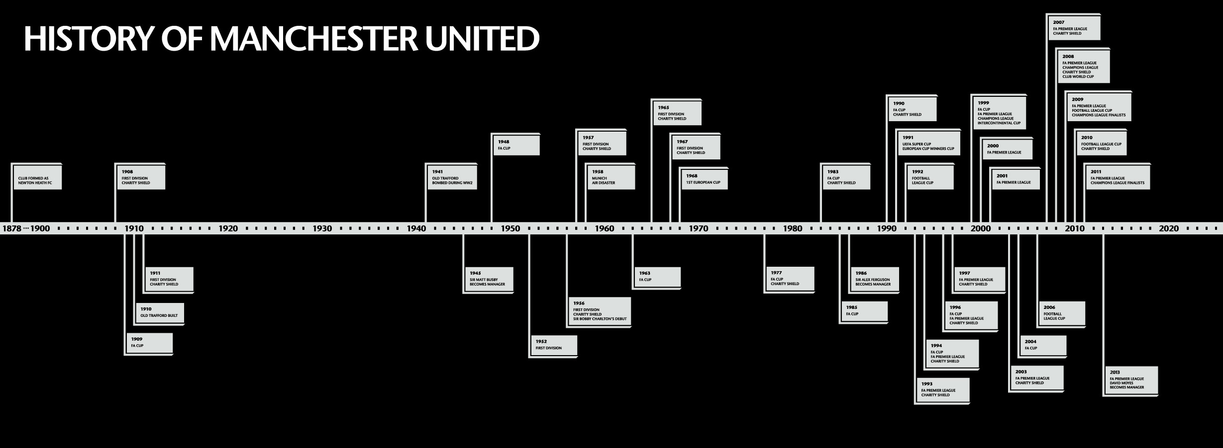 Pada awalnya, Manchester United bermain di North Road, lalu Bank Street dekat dengan kawasan Clayton. Namun, akibat kualitas pitch yang kurang bagus serta polusi udara yang berasal dari pabrik dalam kawasan ini, memicu presiden klub di masa itu, yaitu John Henry Davies untuk memindahkan home basis United ke area Old Trafford yang dikenal di masa kini.