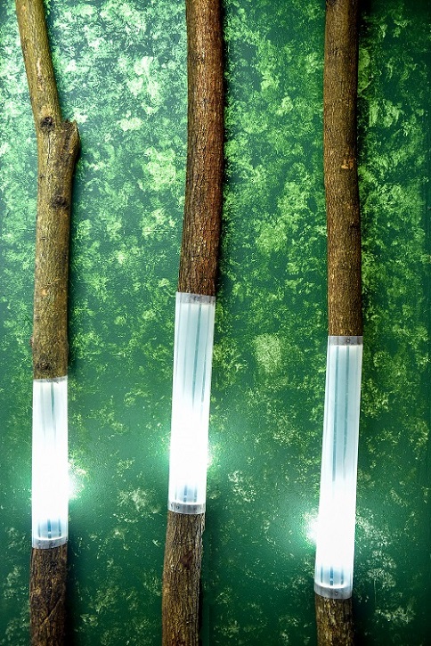 2. Gabungkan LED dan batang pohon menjadi lampu