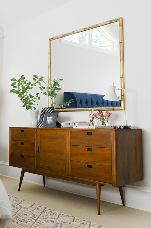 Tempatkan sebuah cermin di dinding belakang credenza dan jadikan sudut ruang menjadi titik berbenah tampilan diri singkat. Tidak hanya itu, cermin besar di atasnya juga seolah dapat memperluas ruang dan suasana di dalamnya.
