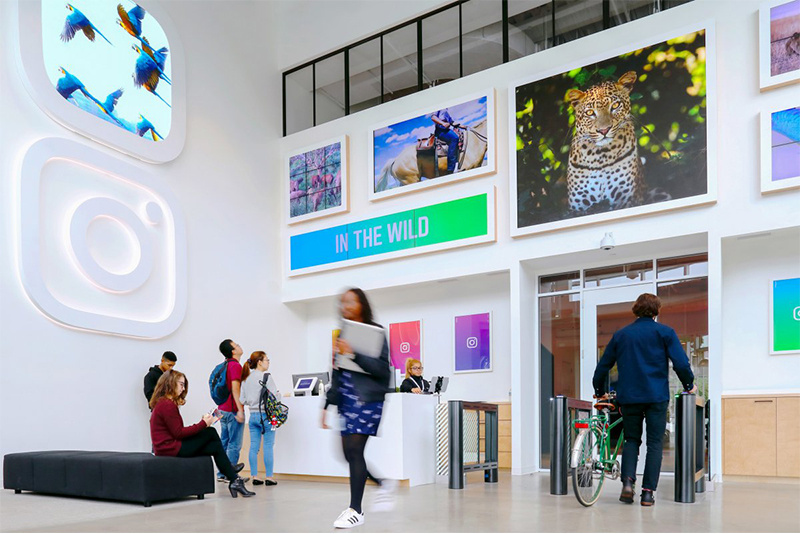 Fitur-fitur modern selayaknya perusahaan berbasis teknologi terpapar sejak memasuki area lobi di mana terdapat delapan layar digital yang menggambarkan setiap konten dalam aplikasi Instagram. Di sisi lain, terdapat area studio yang menyediakan ragam latar “Instagramable” bagi pengunjung bila ingin mengabadikan momen saat bertandang. Mengusung makna kreativitas dan kenyamanan bagi seluruh karyawannya, kantor baru Instagram dirancang dalam tatanan open space sebagai bentuk efisiensi kinerja serta meningkatkan partisipasi lintas level dalam manajemennya.
