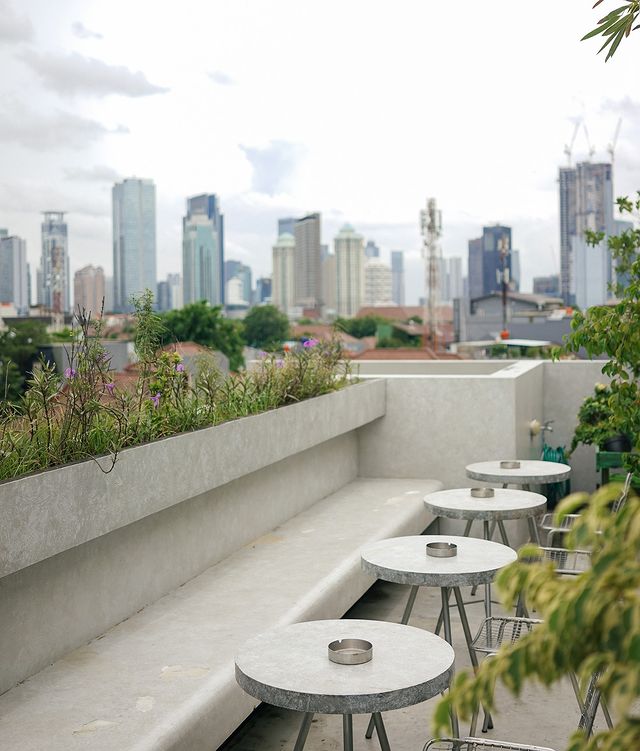 Atap rumah cafe ini cocok banget loh buat Anda yang ingin bersantai-santai bareng sambil menikmati pemandangan Kota Jakarta. Selain menawarkan pemandangan yang indah kafe ini juga memiliki desain yang kekinian banget! Dengan menggunakan sentuhan beton, kafe ini membawa suasana alami ditambah dengan banyaknya tumbuhan. Cocok banget kan jadi spot foto untuk memenuhi feeds instagram Kalian.