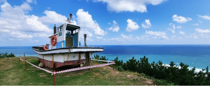 Kapal yang tengah diperbaiki Dushik sebenarnya terletak di puncak Mukeunboung. Untuk menuju lokasi ini, Anda bisa parkir kendaraan di Sabang Memorial Park dan jalan sekitar 15 – 20 menit untuk menuju kapal tersebut.