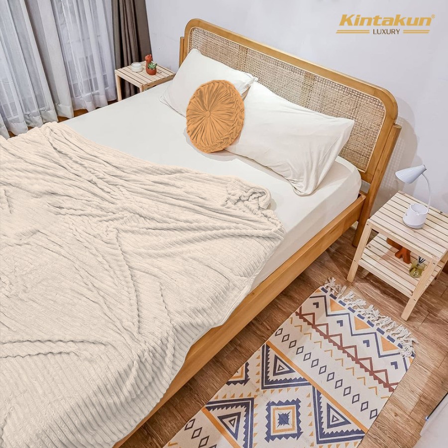 Selain untuk menghangatkan, selimut juga bisa menjadi aksen dekorasi pelengkap bagi ranjang kamar tidur. Selimut dari Kintakun dengan desain yang elegan dan pilihan warna yang beragam dapat menjadi pilihan untuk menambah elemen pada ranjang tidur Anda. Terbuat dari polyester bermutu tinggi, selimut ini dapat memberikan Anda kehangatan dan cocok untuk segala musim.