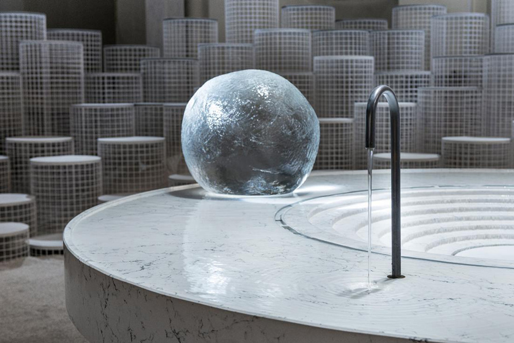 Dengan susunan tinggi yang berbeda-beda, kerangka bundar beratap marmer tersebut memutar mengelilingi sebuah pulau marmer sebagai pusat instalasi. Unsur-unsur utama yang menjadi presentasi pada instalasi Snarkitecture dan Caesar seperti elemen es, air, dan uap tergambar melalui air yang mengalir dari keran melengkung yang mengalir melalui bola kaca besar menyerupai es kemudian menuruni undakan di bagian tengah.