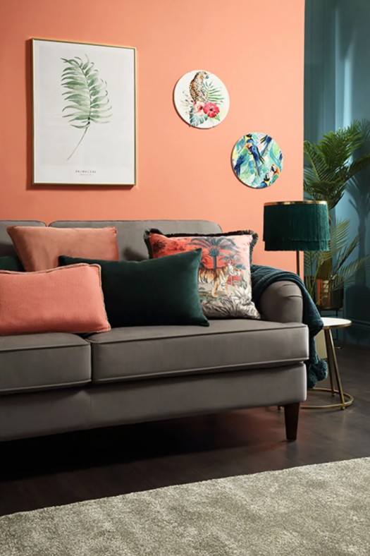 Coral merupakan warna hasil perpaduan oranye dengan merah muda. Mengecat dinding ruang tamu dengan warna ini akan membuat ruangan terasa lebih segar dan sejuk, serta memberi kesan ceria, hangat, dan bersemangat. Tambahan furnitur warna kayu yang natural, putih, atau abu-abu muda, yang akan membuat ruang tamu Anda terlihat lebih cantik.Â