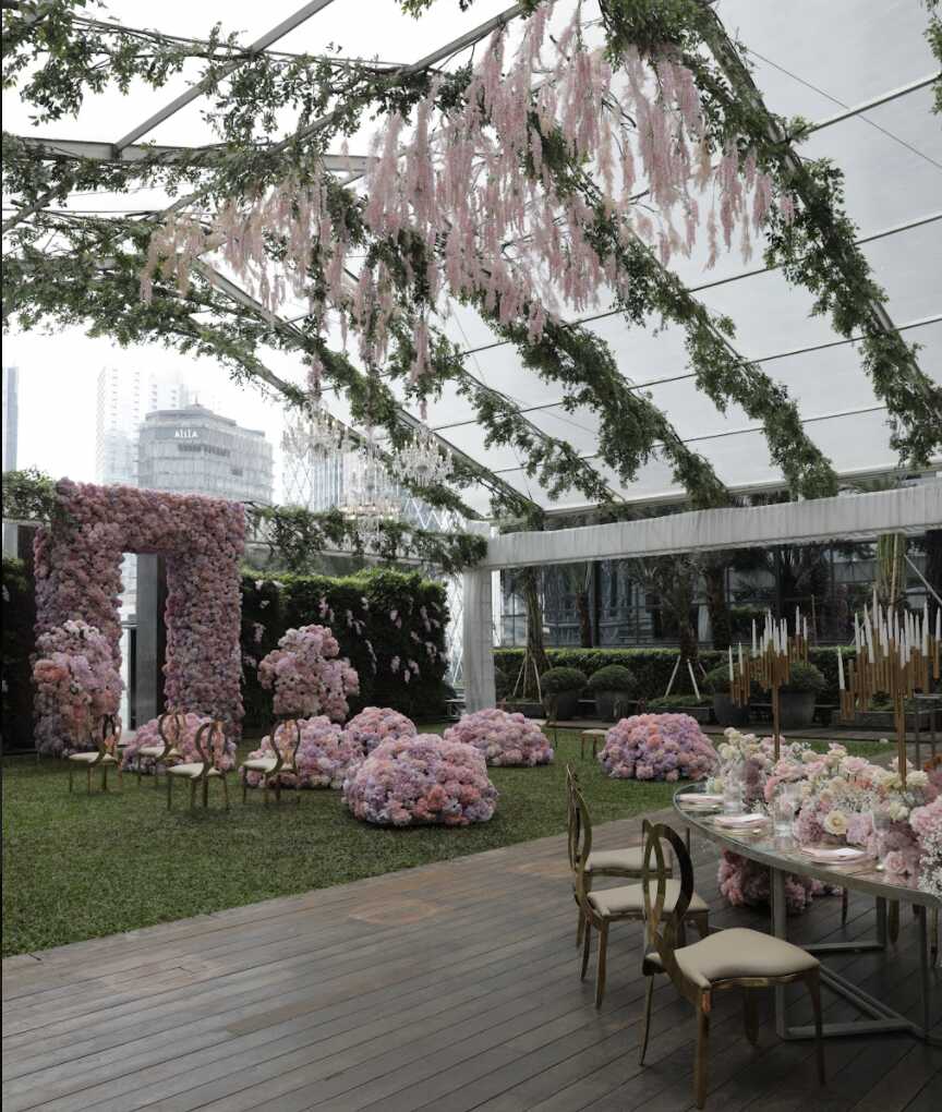 Jika bosan dengan suasana pesta di dalam ruangan tertutup, The Langham Jakarta memberikan alternative tempat pesta di udara terbuka yaitu di taman di lantai 6. Kedua area didekorasi khusus untuk pameran ini oleh Stupa Caspea dan LXE dengan nuansa merah muda yang melambangkan keceriaan dan cinta. Turut pula mewarnai pameran ini adalah peralatan makan dengan desain yang unik dan mewah dari Semeja dan juga Card Menu dari IDILIS Invitation Studio.