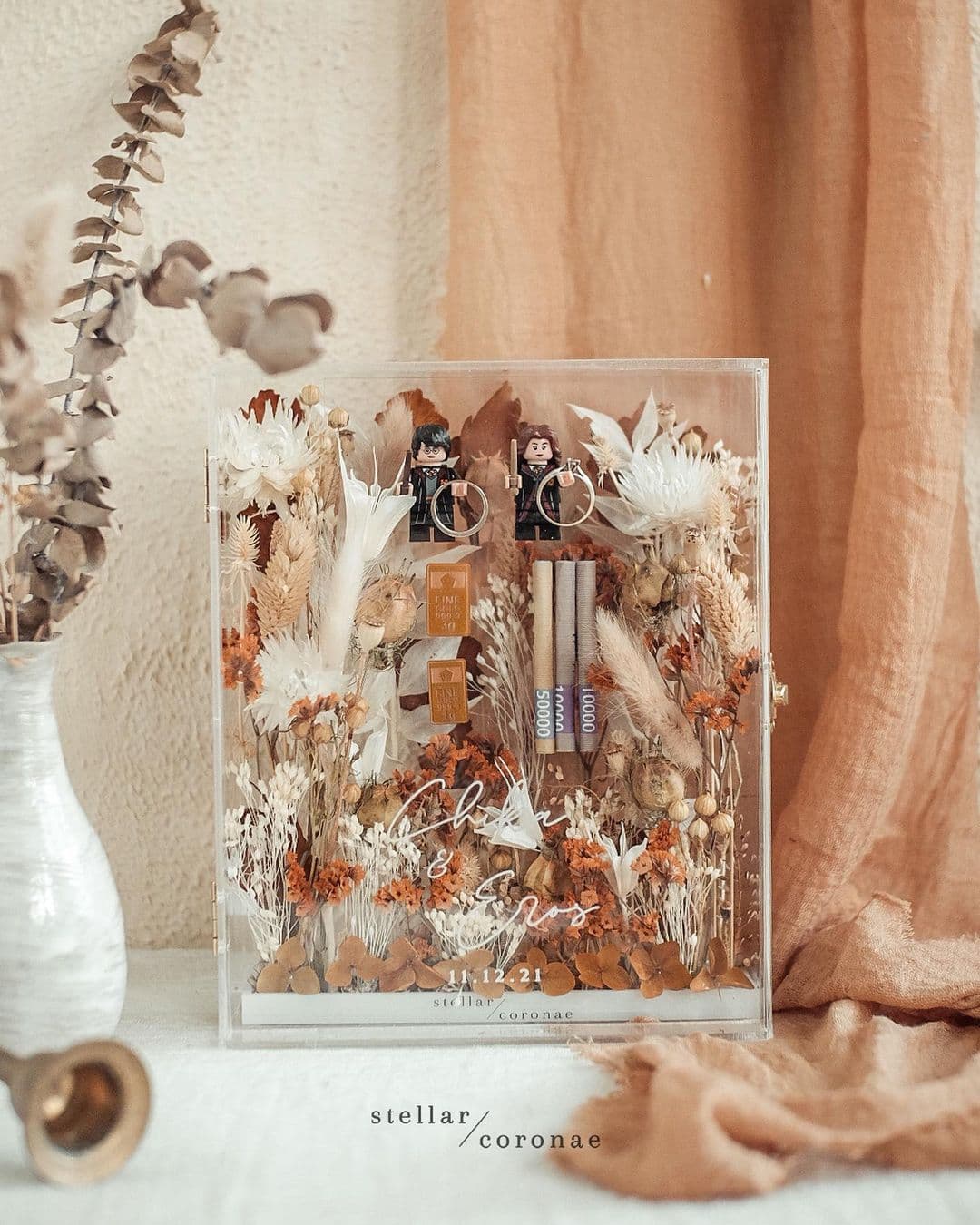 Zodiak ini identik dengan sosok yang serius dan misterius. Hadiah yang memiliki kesan unik akan memiliki daya tarik lebih untuk Scorpio. Salah satunya seperti Dowry Box yang berisi dried flower dan printilan unik lainnya.