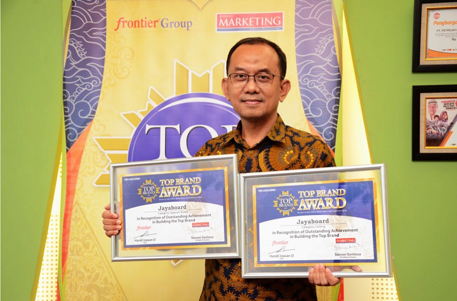 Di saat memilih produk gipsum, brand apa yang pertama kali terlintas di benak Anda? Jika Anda menjawab Jayaboard, berarti Anda adalah salah satu pelanggan yang memberikan kontribusi besar atas penghargaan yang Jayaboard dapatkan sebagai merek terpopuler dalam dua kategori, The Best Gypsum Board dan The Best Ceiling. Jayaboard secara berturut – turut kembali mendapatkan prestasi bergengsi TOP Brand.