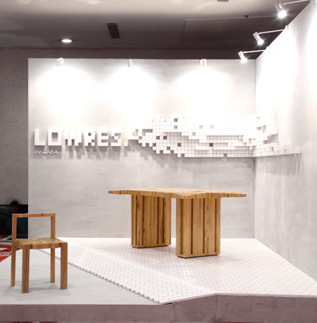 Booth yang dinamai Lowres ini memamerkan furnitur bermaterialkan potongan-potongan kayu pinus 3x3x5 yang disusun secara presisi dan penuh perhitungan.