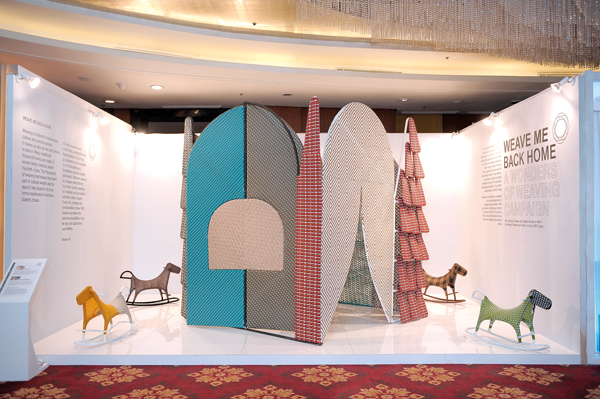 Berkolaborasi dengan BYO Living, Alvin menunjukkan bahwa kreasi anyaman pun dapat menjadi elemen arsitektur dengan melalui space berjudul Weave Me Back Home.Â