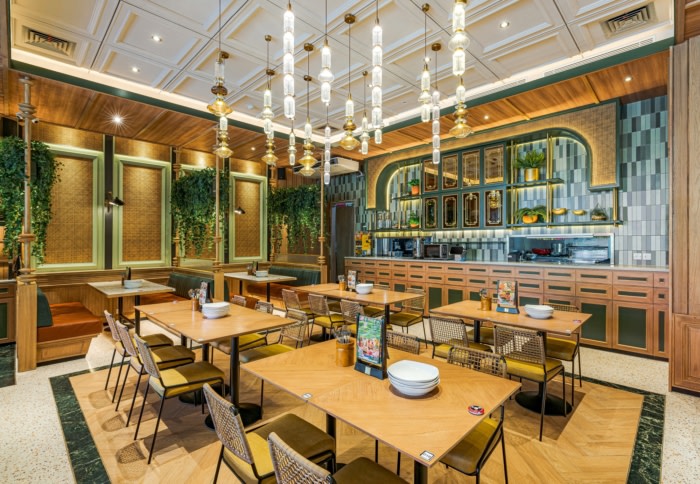 Sebaliknya, jika Anda ingin menampilkan interior restoran dengan gaya yang lebih tradisional, Anda bisa gunakan material dengan dominan kayu.