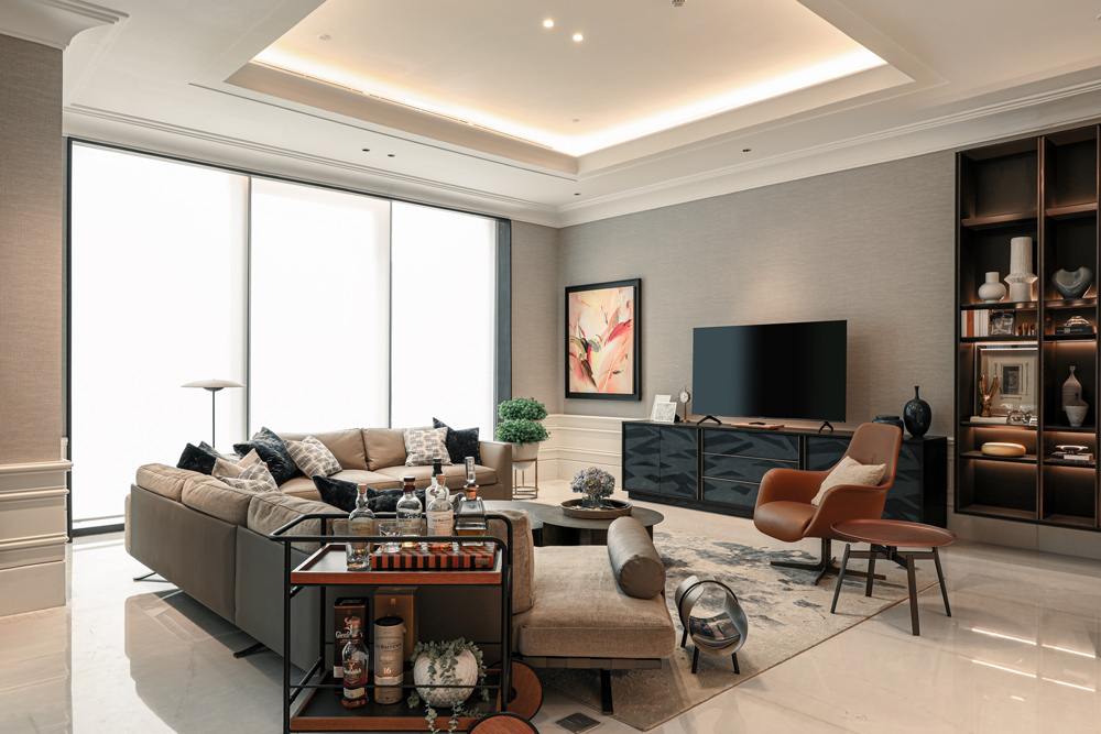 Setiap artisan interior menggarap unit apartemen dengan konsep dan luas ruangan yang berbeda-beda. Dari Vinoti Living, didesain dengan lebih elegan bergaya klasik Amerika dan memiliki luas sekitar 370 meter persegi.