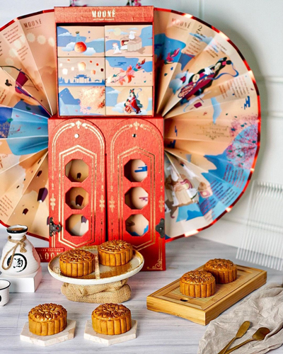 Beri makna lebih saat berbagi mooncake lewat Packaging Kipas buatan Moone Bakery yang berisi ilustrasi The Story of The Moon, Chang’e. Terdiri dari 6 pilihan rasa, yaitu Japanese Yuzu, Taiwanese Milk Tea, Melayu Cendol, Korean Sweet Potato, Moone Lotus Gold, Moone White Lotus Gold.Â