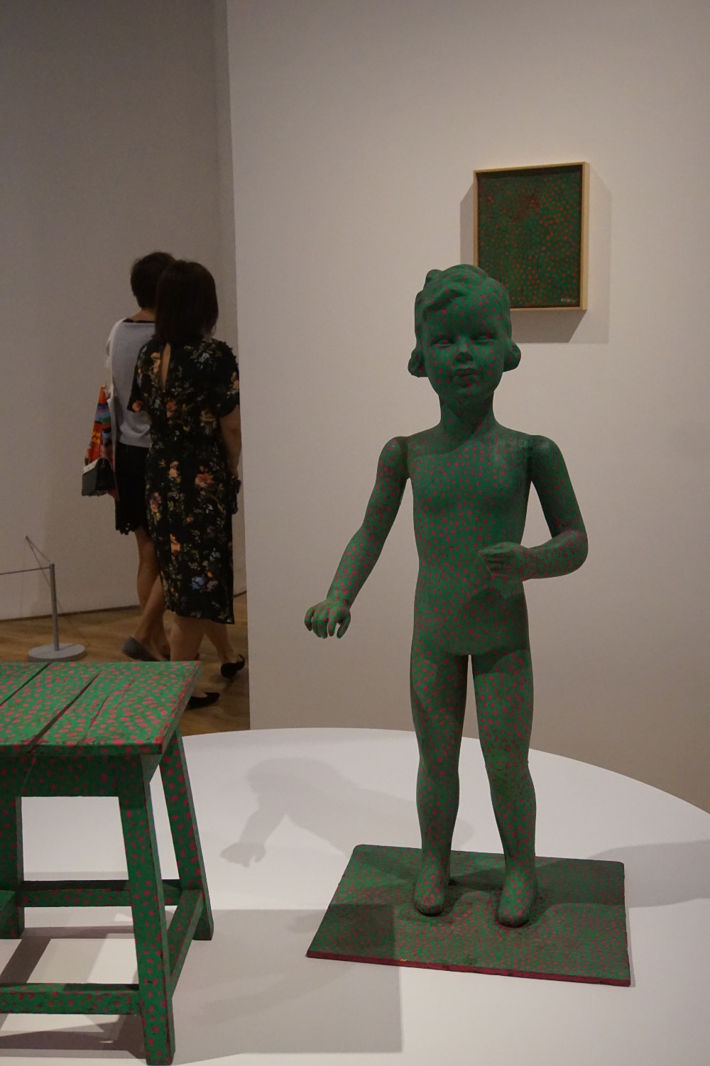 Saat menelusuri karya seniman eksentrik dari Jepang dalam pameran ini, pengunjung dapat menyaksikan bagaimana sang seniman mengeksplorasi obsesinya atas polkadot, figur labu, serta motif yang terus berulang. Dalam karyanya, Yayoi Kusama sangat dipengaruhi oleh kondisi dirinya yang kerap kali melihat halusinasi titik dan warna saat melihat lingkungan di sekitarnya. Kondisi tersebut tidak membatasi sang seniman,justru dijadikan sebagai amunisi untuk mengeksplorasi sisi artistik dalam dirinya.Â