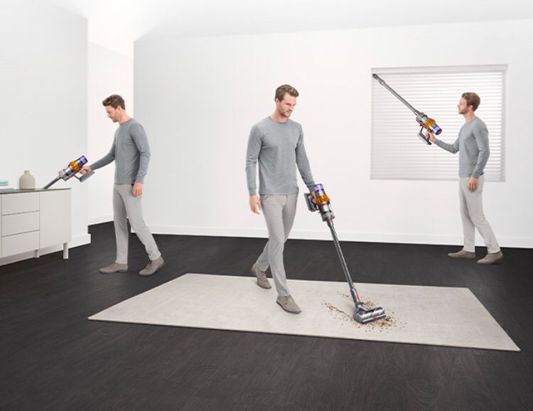 Dyson V15 bisa digunakan di lantai, sela-sela kecil, dan alas berbusa.