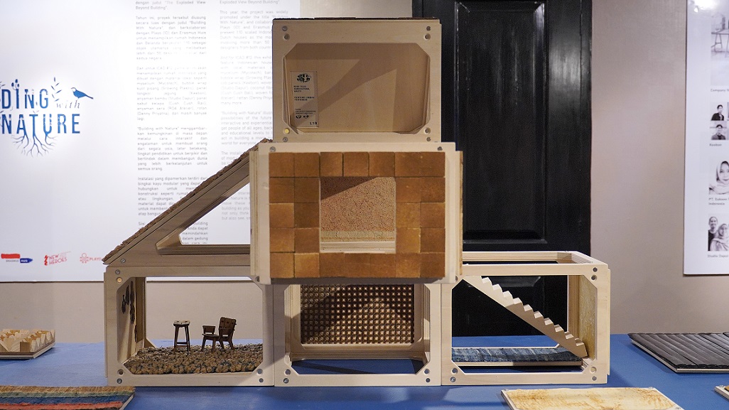 Karya yang ditampilkan, memiliki dinamik beragam seperti yang dilakukan PLAYO bersama Erasmus Huis menggunakan bio-based material yang digagas oleh British Council.