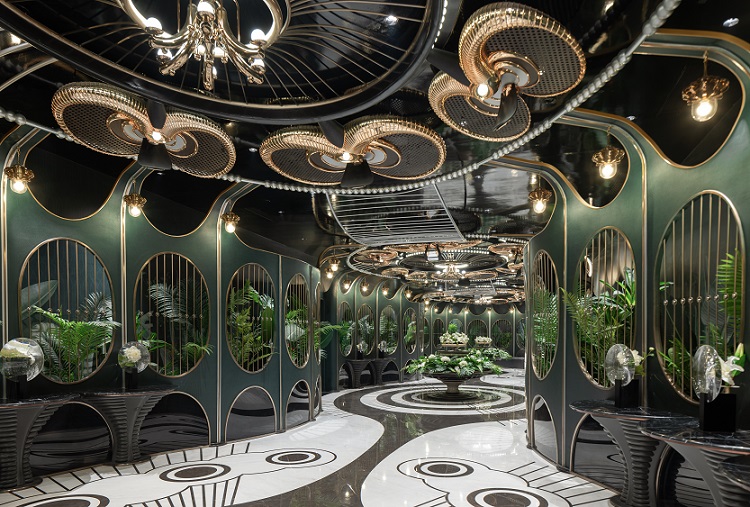 Mengambil inspirasi dari krisis lingkungan menjadi sebuah konsep taman seni ekologi, area kamar mandi menggunakan wallpaper hijau di lengkapi penaruhan tanaman di setiap dindingnya akan terkesan seperti masuk ke dalam istana. Saat memasuki setiap bilik ruangan, Anda dapat merasakan suasana mewah dikelilingi estetika desain yang simetris dan paduan warna yang bisa dinikmati saat bersantai di lounge.