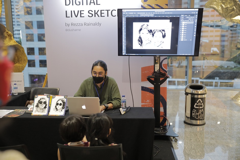 Pengunjung yang hadir berkesempatan mencoba dan mendapatkan hasil digital live sketch yang digambar langsung oleh Rezza Reinaldy dan merch official ASTRA Property dari clow machine yang ada di booth ASTRAland secara gratis.