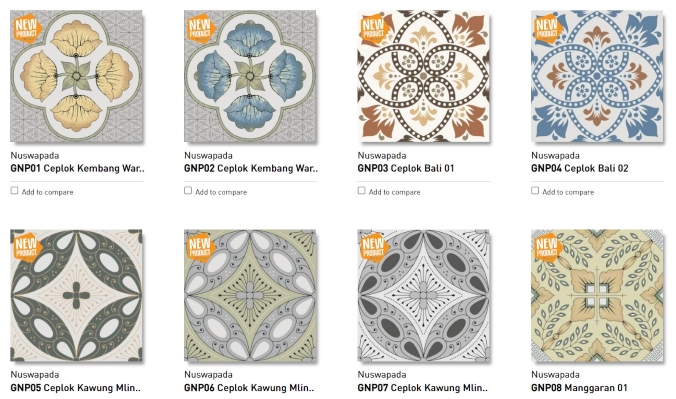 Nuswapada collection memiliki berbagai macam warna, dari yang berwarna cerah, pastel, dan monokrom. Bahkan dipenggunaannya dalam arstitektur oriental ini bisa terpadu dengan cantik antara desain batik dan ornamen lainnya.