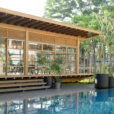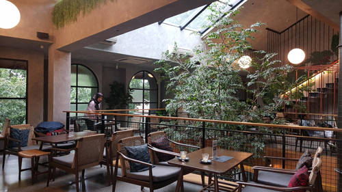 Sore hari adalah waktu yang tepat untuk menikmati deru angin dan kopi di kafe yang berlokasi di Lebak Bulus, Jakarta Selatan ini. Gedung dua lantai beratap segitiga yang digunakan untuk roasting biji kopi merupakan signature spot dari kafe. Seluruh bangunan dirancang bergaya minimalis dengan mengekspos concrete pada fasad serta interiornya.