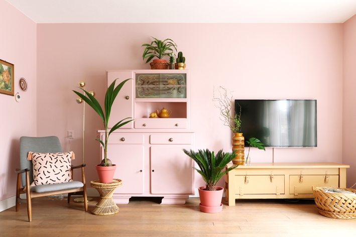 2. Berikan aksen warna baby pink melalui dekorasi ruangan