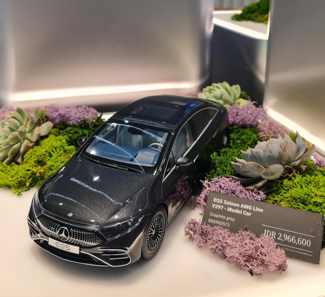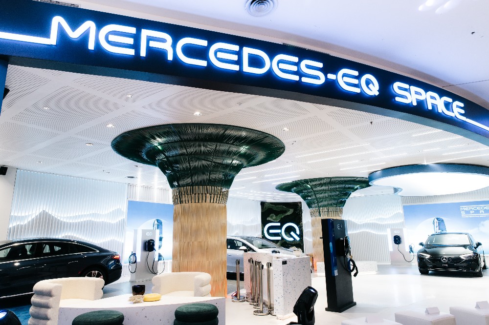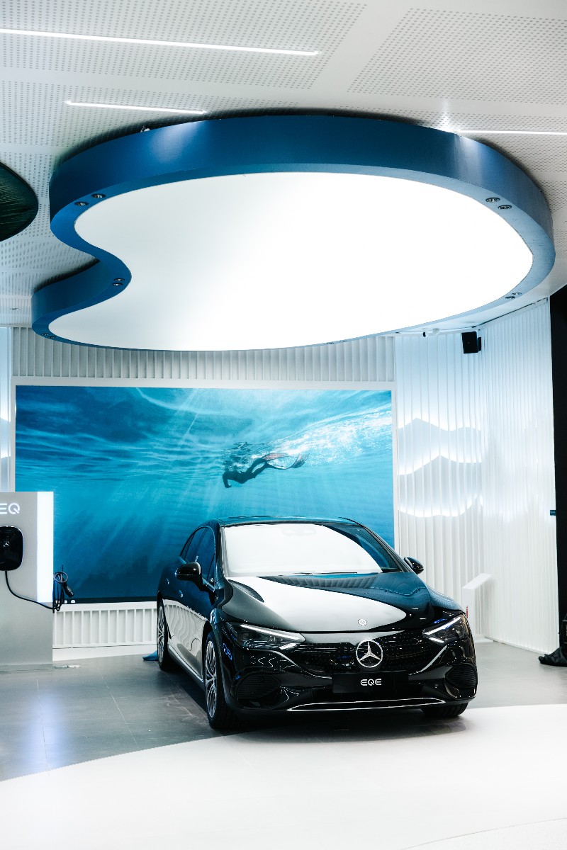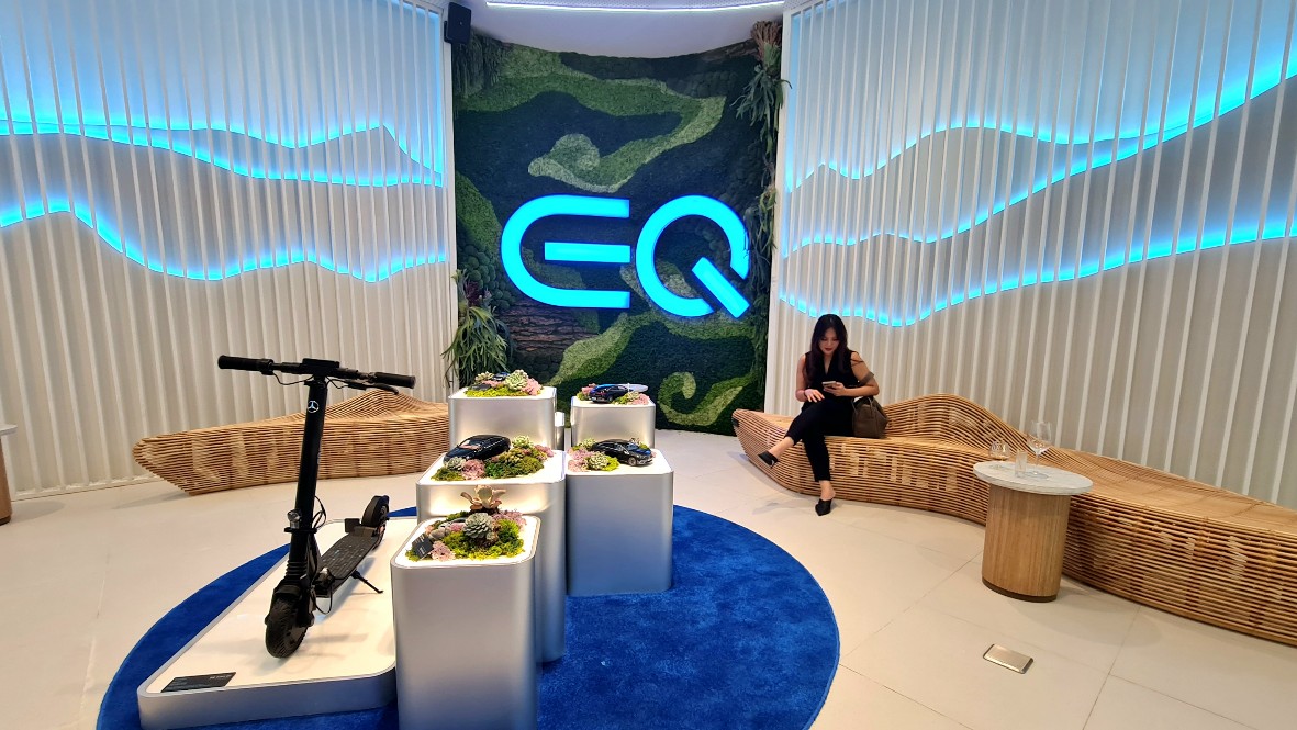 Pengunjung dapat merasakan langsung kemewahan Mercedes-EQ dan tentunya jangan lewatkan kesempatan test drive (limited) jika Anda berkunjung ke Senayan City. Desain Mercedes-EQ SPACE karya Vania Maringka Architects pun mengusung konsep interior yang terinspirasi dengan alam tapi dengan sentuhan futuristik. Dinding yang merepresentasikan pegunungan, lantai yang dibuat bagai laut dan pantai, serta pepohonan yang mirip dengan film Avatar dan terbuat dari recycled material (plastik tutup botol yang diolah). Kursi karya Alvin-T pun hadir sebagai elemen interior yang estetik.