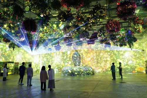 Selain menu andalan Starbucks, projection mapping show di Hana Biyori merupakan salah satu atraksi yang sayang untuk dilewatkan saat berkunjung kesini. Menutupi tiga sisi dinding dengan total panjang capai 60 meter, digital immersive experience bertaburkan indahnya flora dan fauna mengisi kafe. Pengalaman audio visual menarik ini ditayangkan empat hingga enam kali dalam sehari.Â