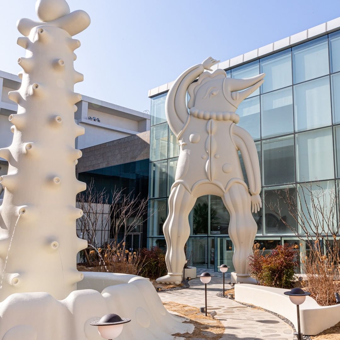 Warna putih mendominasi karya patung karakter ciptaan Jaime Hayon yang tersebar di Gates Garden menciptakan lingkungan yang artsy di area outdoor ini.