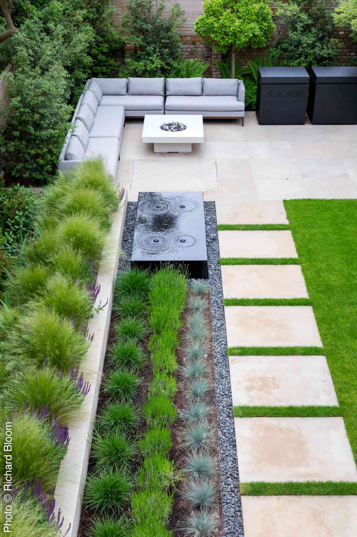 Sebagai variasi, Anda bisa mengombinasikan batu kerikil sebagai basis, lalu di atasnya letakkan lempengan batu persegi yang lebih besar untuk memberikan kontras yang menciptakan kesan lebih menarik, lebih modern, dan elegan.Â