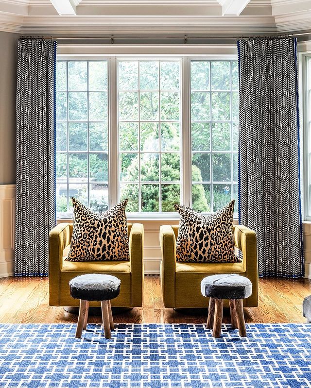 Jika Anda ingin menghadirkan kesan monokrom ke dalam ruang tamu, coba pertimbangkan menggunakan gorden dengan warna yang lebih berani, warna hitam, misalnya. Ini akan sangat cocok untuk menciptakan tampilan modern dan elegan ke ruang tamu Anda. Tambahkan beberapa aksen gold untuk semakin menambah kesan elegan dan menarik perhatian.