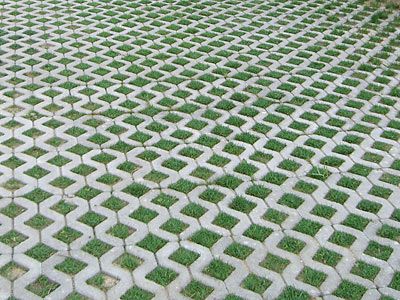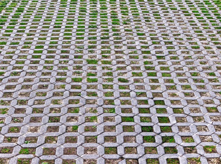 Pola paving block yang satu ini tergolong unik karena penyusunannya dibuat menyilang, dan ada celah kosong di bagian antara paving yang bisa Anda tanami dengan rumput hijau untuk menambah nilai estetika.
