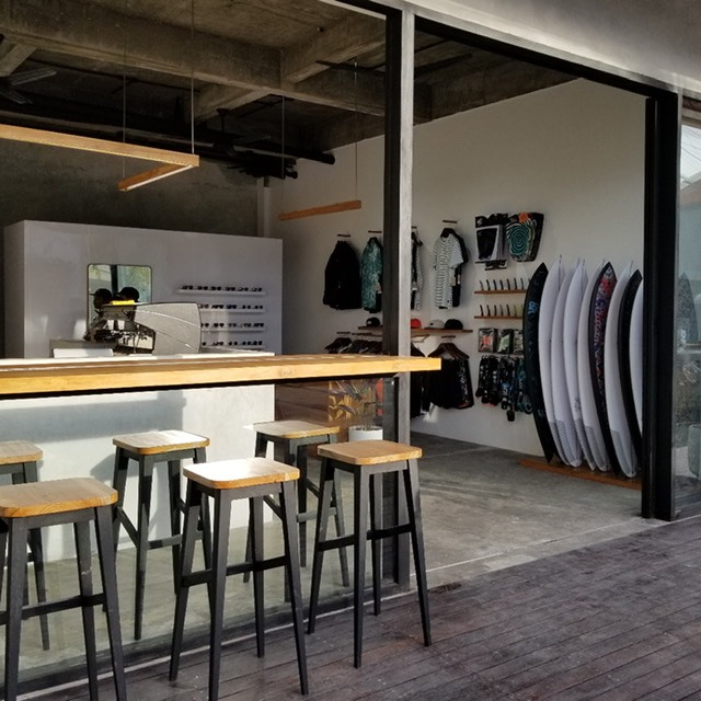 Konsep open space dan minimalis, menyatukan coffee bar dan surf shop menjadi tempat kumpul untuk berbagai komunitas.